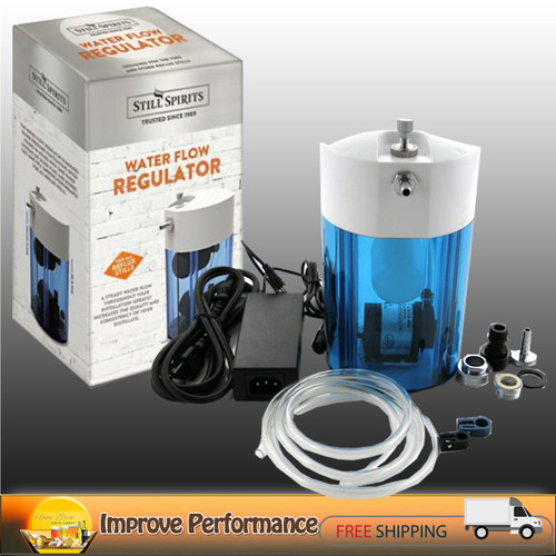 The water flow regulator eliminates water pressure fluctuations often found in homes with tank water systems or older flats and houses. This unit will improve performance for all reflux stills.